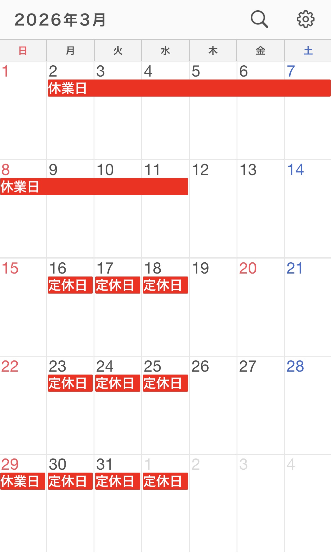 営業日(3月訂正分)